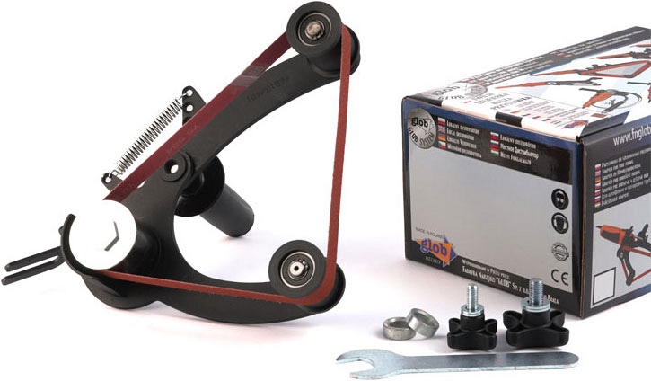 Адаптер на болгарку для шлифовки труб Glob System (Глоб Систем) – приспособление для ушм (угловой шлифовальной машины – шлифмашинки) для шлифовки, полировки и сатинирования круглых и овальных элементов, перил, балюстрад, труб Ø 10 – 100 мм по окружности 360° на 125 мм угловых шлифовальных машинах с регулируемой скоростью.