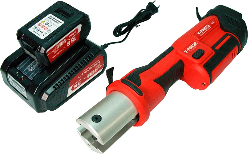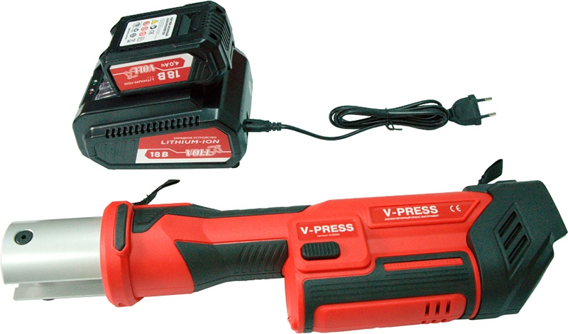 Аккумуляторный гидравлический радиальный пресс-инструмент для обжима фитингов Voll V-Press (Волл В-Пресс) без пресс-клещей предназначен для радиальной опрессовки медных труб Ø 6,35 – 108 мм (1/4" – 4"), нержавеющих труб Ø 12 – 54 мм (1/2" – 2"), сшитых полиэтиленовых (PEX), многослойных композитных и металлопластиковых (МПТ) труб Ø 12 – 108 мм (1/2" – 4"). Идеально подходит для использования в сантехнических и отопительных системах.