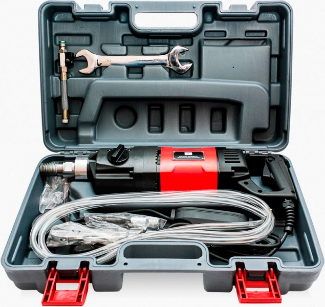 - Шланг для подачи воды, встроенный в сверлильный двигатель
