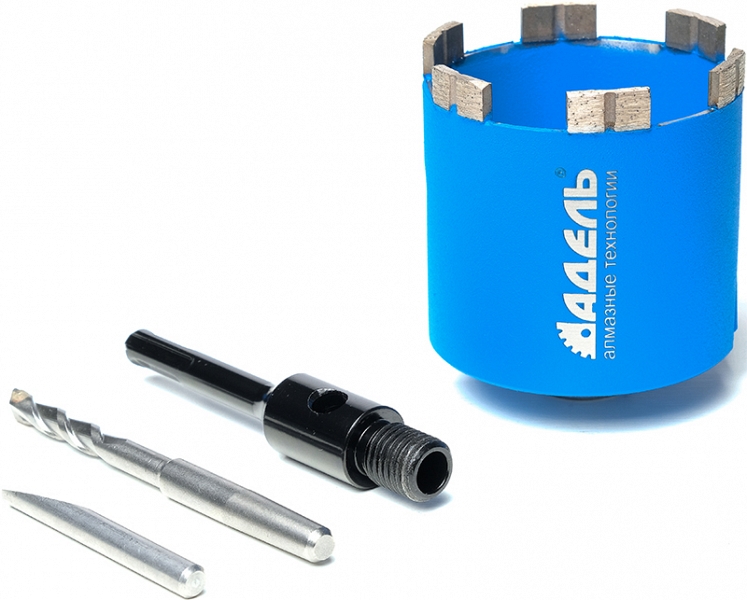 - Возможно использование с центровочным твердосплавным сверлом и различными переходниками (М16 – Шестигранник, М16 – SDS-Plus, М16 – SDS-Max)