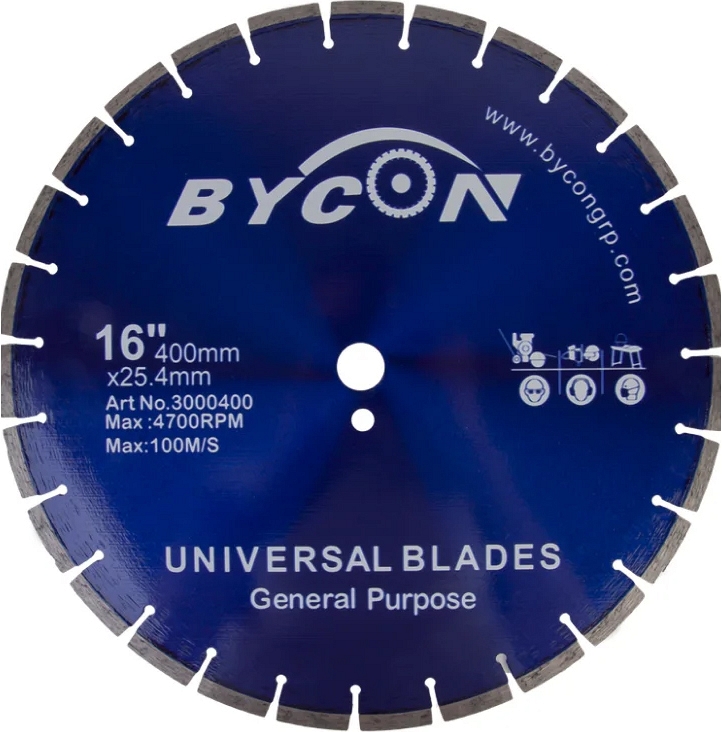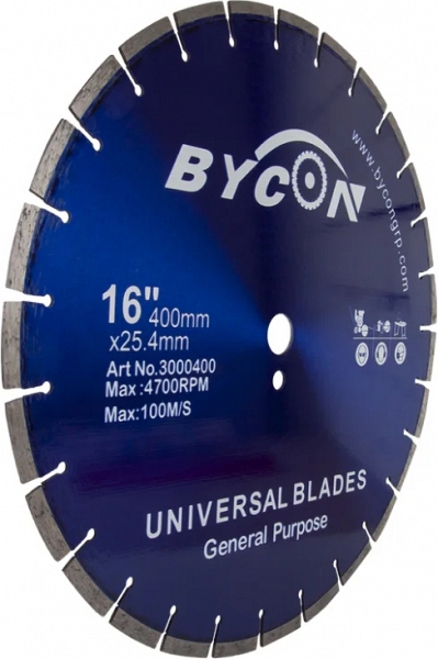 Алмазный диск Bycon Laser Uni 400 мм (Байкон Лазер Уни 400 мм) применяется, как правило, на бензорезах, электрических резчиках, камнерезных станках, стенорезных машинах и швонарезчиках. Обрабатываемые материалы: бетон, армированный железобетон, гранит, природный камень, клинкерный кирпич (клинкер) и другие материалы.