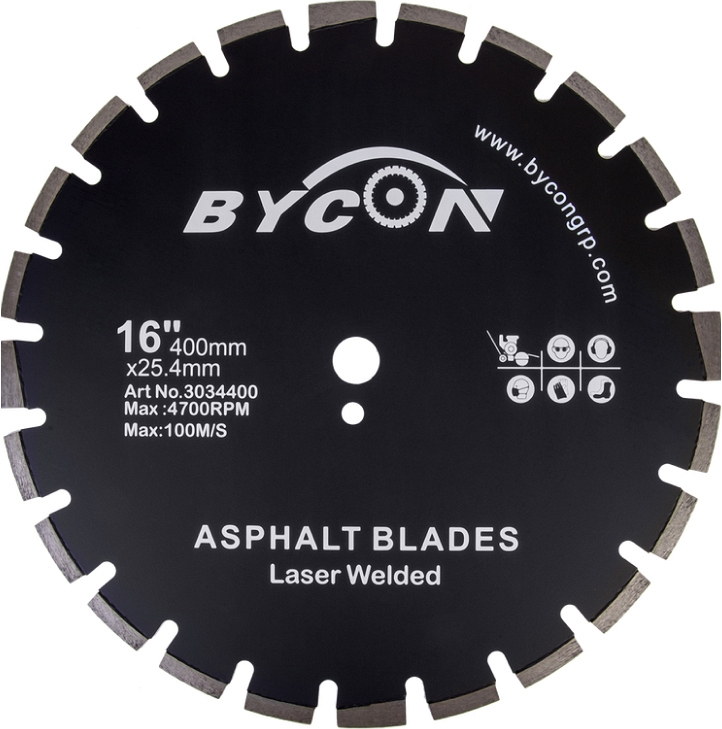 Алмазный сегментный диск Bycon Laser Asphalt 400 мм (Байкон Лазер Асфальт 400 мм) применяется, как правило, на бензорезах, электрических резчиках, камнерезных станках, стенорезных машинах и швонарезчиках. Обрабатываемые материалы: асфальт, мягкий силикатный кирпич, цементная стяжка, абразивный бетон, мягкий песчаник и другие абразивы.