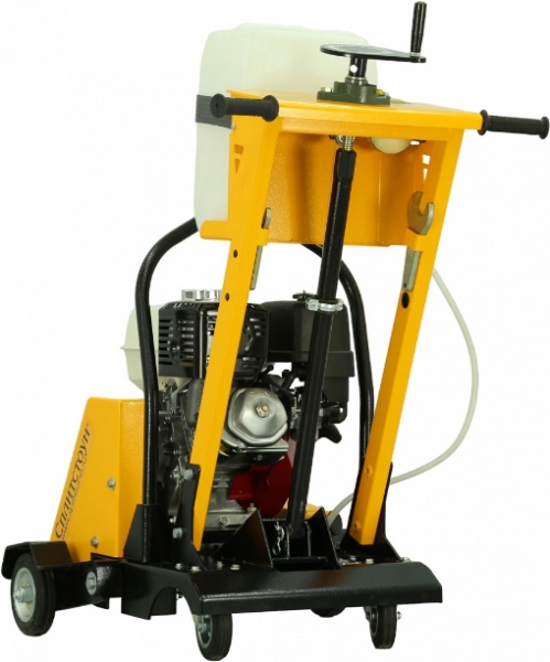 - Вращающиеся вокруг вертикальной оси задние колеса позволяют своевременно и без лишних усилий направлять в нужную сторону и вести криволинейный рез бетона, железобетона, асфальта, повторяя изгиб трещины