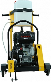 - Бензиновый двигатель Lifan 190F обеспечивает необходимую автономность работ в полевых условиях: в обычном режиме работы при глубине прямоугольного реза 6 см и ширине 1 см достигается скорость 1 м/мин по асфальту и 0,5 м/мин по бетону