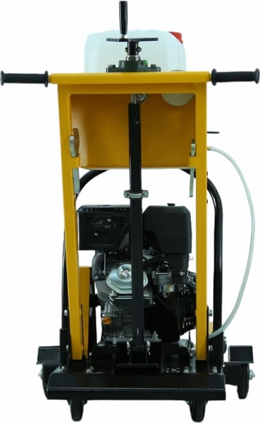 - Вращающиеся вокруг вертикальной оси задние колеса позволяют своевременно и без лишних усилий направлять в нужную сторону и вести криволинейный рез бетона, железобетона, асфальта, повторяя изгиб трещины