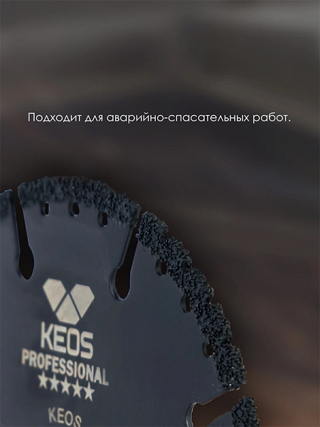Диск алмазный универсальный Keos Professional 125 мм (Кеос Профессионал 125 мм) предназначен для резки металлов, пластика, резины, бетона, армированного бетона (железобетона), кирпича, древесины и т.д. ушм (болгарками), штроборезами, системами резки крупноформатной плитки, как с подачей воды, так и всухую. Подходит для универсального использования, аварийно-спасательных работ и многого другого.