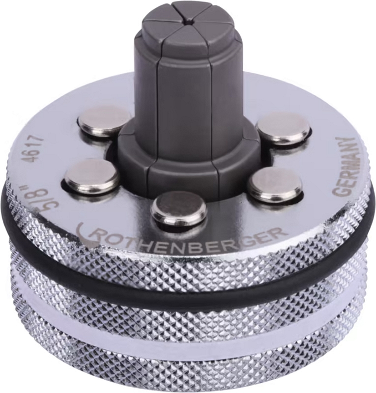 Экспандерная головка Rothenberger Rolock 5/8"×1,2 мм (Ротенбергер Ролок 5/8"×1,2 мм) – клепаная расширительная насадка для расширения мягких и полутвердых медных, мягких алюминиевых, мягких прецизионных и инструментальных стальных, мягких нержавеющих стальных труб Ø 5/8", толщиной стенки до 1,2 мм, для изготовления точных муфтовых соединений в соответствии с нормами DVGW / DIN / ГОСТ и Gas de France.