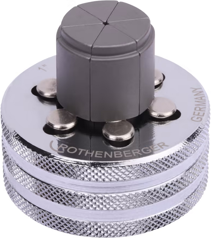 Экспандерная головка Rothenberger Standard 1"×1,5 мм (Ротенбергер Стандарт 1"×1,5 мм) – стандартная клепаная расширительная насадка для расширения мягких и полутвердых медных, мягких алюминиевых, мягких прецизионных и инструментальных стальных труб Ø 1", толщиной стенки до 1,5 мм, для изготовления точных муфтовых соединений в соответствии с нормами DVGW / DIN / ГОСТ и Gas de France.