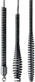 - Применяются прочистные спирали Ø 6,4 мм (1/4"), 8 мм (5/16") и 9,6 мм (3/8"), длиной 4,6 м; 7,6 м; 10,7 м и 15,2 м; с внутренними сердечниками IC, E, EIC; с грушевидной головкой или переходником с насадками. Изготовлены из специальной закаленной стали: