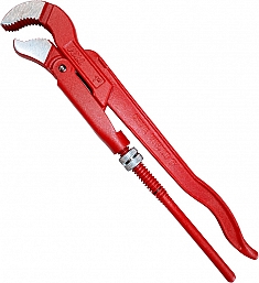 - Износоустойчивые S-образные губки расположены под углом 45° к рукоятке