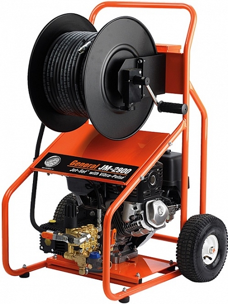Бензиновая автономная каналопромывочная гидродинамическая прочистная машина General Pipe Cleaners JM-2900 (Дженерал Пайп Клинерс ДжиМ-2900) с режимом системы пульсации Vibra-Pulse (Вибра-Пульс) предназначена для прочистки канализационных труб, сточных трубопроводов Ø 50 – 200 мм (2" – 8"). Почный, легкий, гибкий шланг продвигается по трубопроводам, пробивает засоры, образованные шламом, мылом, жиром и отложениями. При постепенном извлечении шланга, трубопровод прочищается, смывая отходы, а в сточных трубах полностью восстанавливается их безнапорная пропускная способность – вредные химикаты не используются. Гидродинамика подходит для крупных коммерческих и промышленных объектах.
