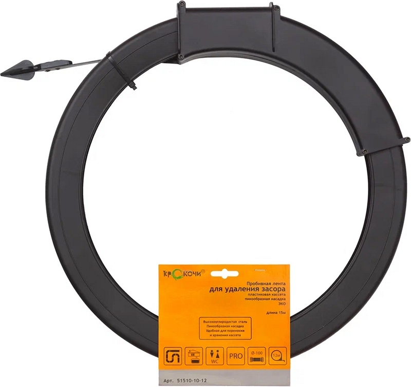 Цена и технические характеристики ленты для прочистки канализации Крокочист 12 м × 9,5 мм × 1,6 мм: