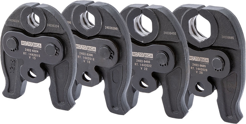 Мини пресс-клещи Rotorica Mini V 22 (Роторика Мини В 22) предназначены для обжатия радиальных пресс-фитингов тонкостенных металлических (медных, нержавеющих и стальных) труб Ø 22 мм профилем V.