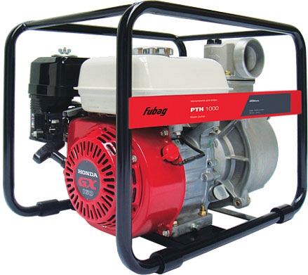Мотопомпа для воды бензиновая Fubag PTH 1000 (Фубаг ПТХ 1000) предназначена для перекачивания чистой или слабозагрязненной воды, в которой содержаться частицы включений диаметром не более 4 мм, в бассейнах и прудах, на дачных участках, а также для осушения котлованов и затопленных участков.