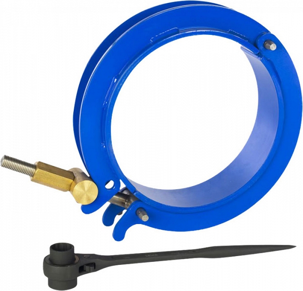 - Прочный и долговечный механический 2-х сегментный зажим для закругления (удаления овальности) полиэтиленовых труб перед сваркой
