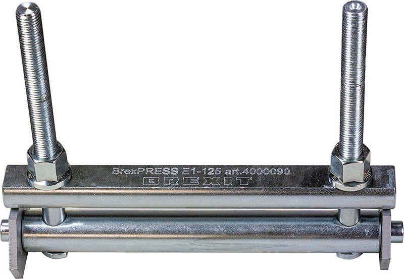 Передавливатель механический для полиэтиленовых труб Brexit BrexPress Е1-125 (Брекзит БрекзПресс Е1-125) – механическое устройство для временного передавливания (перекрытия) ПЭ, ПЭВП, ПЭНД трубопроводов Ø 50, 63, 75, 90, 110, 125 мм, с ограничителями SDR 11, на время проведения монтажных, ремонтных и восстановительных работ.