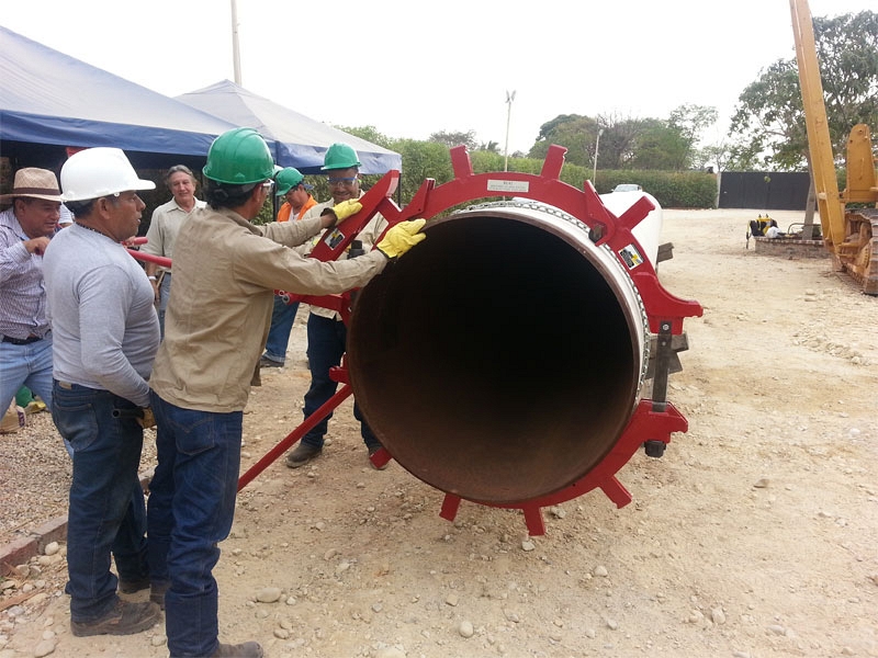 Поворотный роторный труборез Reed Rotary Cutter RC36S (Рид Ротари Каттер РЦ36С) предназначен для холодной искробезопасной резки труб больших диаметров из стали и нержавеющей стали (schedule 40) Ø 813 – 915 мм (32" – 36"), а также ковкого и литого чугуна (с дополнительными отрезными роликами) Ø 813 – 915 мм (30") в стесненных условиях, в котлованах, под водой, во взрывоопасной атмосфере (холодная резка), в местах, где запрещен шум, на трубных эстакадах и т.д.