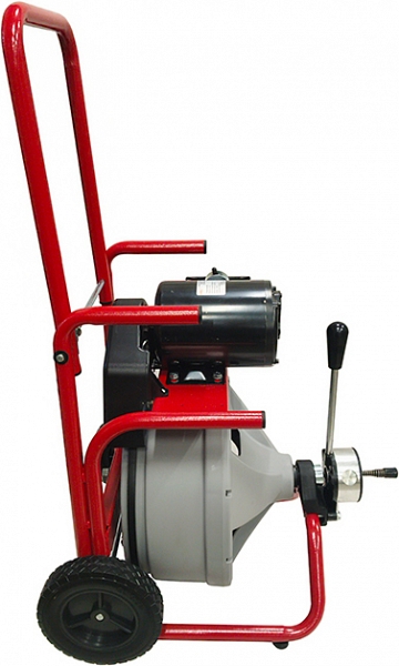 Прочистная машина барабанного типа Voll V-Clean Drum100 Electro (Волл В-Клин Драм100 Электро) – мощная, прочная, надежная, маневренная, электромеханическая машина с автоподачей для прочистки канализационных труб канализации Ø 20 – 100 мм, длиной до 25 м, с максимальной тросоемкостью для использования внутри помещения, на предприятиях общественного питания, в ЖКХ и частных домовладениях.