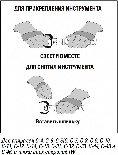 – C-7 TW (Tight Wind): Туговитая спираль, обеспечивающая удовлетворительную жесткость (жестче и мощнее полых спиралей), не подходит для прочистки засоров из корней деревьев