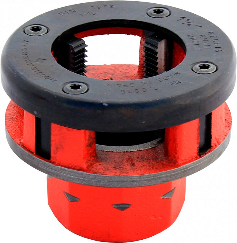 Резьбонарезная головка для клуппов Rothenberger Super Cut BSPT R 1 1/4" (Ротенбергер Супер Кат БСПТ Р 1 1/4") предназначена для нарезки правой конической трубной резьбы BSPT R на трубах Ø 1 1/4", изготовления точных резьбовых соединений в соответствии с DIN EN 10226.