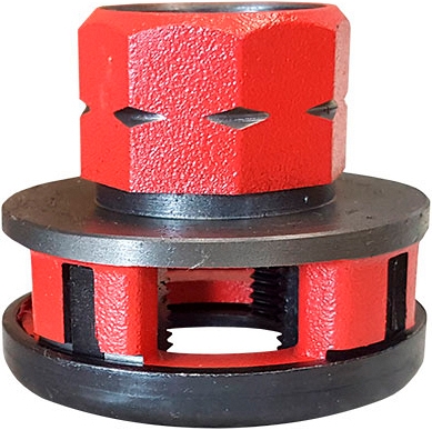 - Быстросменная резьбонарезная головка с надежным креплением для ручных резьбонарезных трубных клуппов Super Cut, электрических резьбонарезных трубных клуппов Supertronic 1250 и 2000