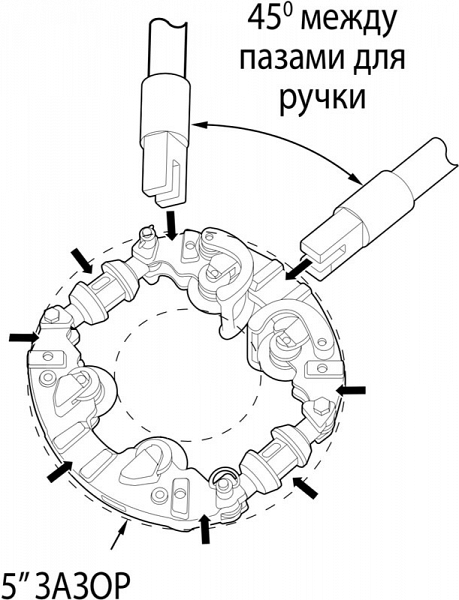 - Съемная рукоятка, которая используется для вращения роторного трубореза вокруг трубы и, одновременно, для поджима режущих роликов при каждом полуобороте