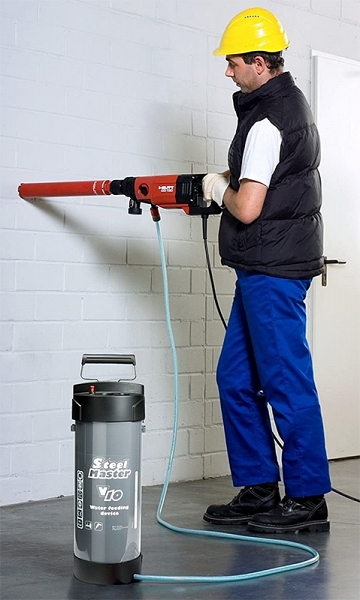 Ручной водяной насос Gloria Steel Master V10 (Глория Стил Мастер В10) – устройство подачи воды из стали для внешнего водоснабжения станков корончатого сверления или алмазных фрез. Алмазные корончатые сверла часто используются в строительном и гражданском строительстве, в стальных конструкциях или при ремонте фасадов. Этим машинам постоянно требуется охлаждающая вода, чтобы противостоять чрезмерному нагреву и износу материала. Впечатляет своими гибкими возможностями использования. Его можно подключать к ручным дрелям и буровыми установкам для мокрого сверления, а также к отрезным станкам или аналогичным устройствам.