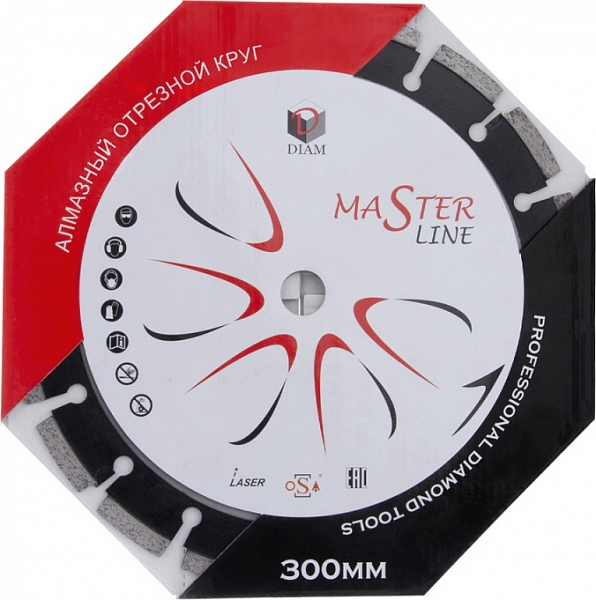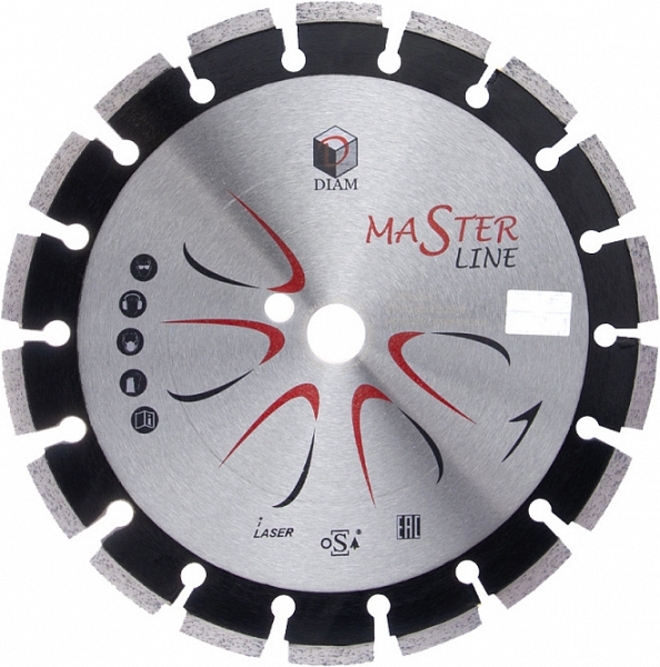Сегментный алмазный круг Diam Master Line 1A1RSS Асфальт 300 мм (Диам Мастер Лайн 1А1РСС Асфальт 300 мм) – специальный алмазный отрезной диск с лазерной сваркой сегментов для сухой и мокрой резки асфальта, асфальтобетона, пенобетона, абразивного песчаника, кирпича и других абразивов на резчиках швов, стенорезных машинах, бензорезах, электрических резчиках и плиткорезах, камнерезных станках, как с подачей воды, так и без нее.