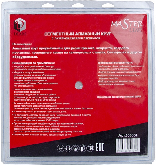 – С водяным охлаждением: предназначен для работы с водяным охлаждением, использование без подачи водяного охлаждения может привести к выходу из строя, за исключением, когда предназначен как для сухой, так и для мокрой резки - Корейские технологии: изготовлен по технологиям и под контролем ведущих производителей алмазного инструмента Южной Кореи, специально по заказу ГК Диам