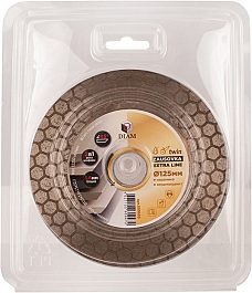 Специальный алмазный круг Diam Extra Line Turbo Zausovka Twin 125 мм (Диам Экстра Лайн Турбо Заусовка Твин 125 мм) – специальный тонкий 1,6 мм алмазный отрезной диск для резки и заусовки (шлифовки) керамической плитки и керамогранита.