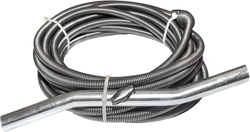 Спираль для прочистки канализации Крокочист 13 мм × 7,6 м (Crocochist 13 mm × 7,6 m) с универсальной насадкой для удаления засоров в канализационных трубах Ø 76 – 150 мм, длиной до 7,6 м. Отлично справляется с такими засорами, как закупорка труб органикой, предметами гигиены, палочками, волосами, мыльным камнем, илом, ватой, пищевыми отходами.