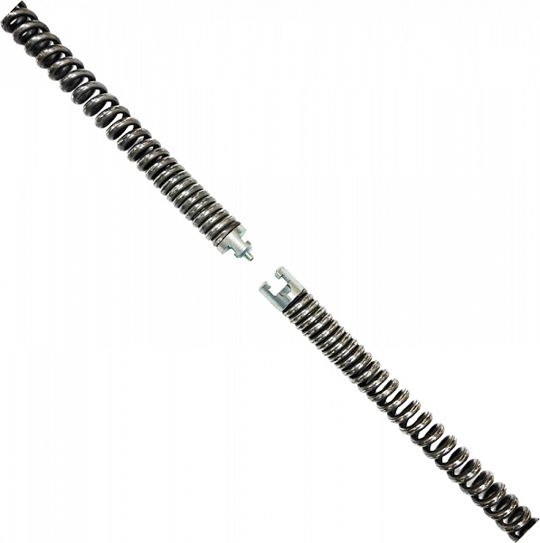 - Универсальный Т-образный замок: надежное сцепление спиралей между собой для удлинения и с прочистными насадками