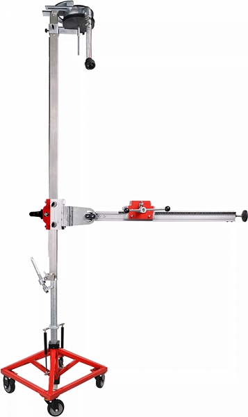 Телескопическая распорная станина для потолочного алмазного бурения Bycon DSP-3000 (Байкон ДСП-3000) – профессиональная, удобная, легкая, компактная, устойчивая и надежная стойка c прочным стальным основанием для распорного (безанкерного) крепления к поверхностям, транспортировочными колесами, водосборным кольцом, быстросъемным креплением двигателя для корончатого, колонкового, потолочного, вертикального и горизонтального сверления отверстий Ø до 200 мм в бетоне, железобетоне, кирпиче, камне и других материалах с использованием дрелей и двигателей для алмазного бурения всех производителей с диаметром шейки 60 мм или пластиной крепления на 4 болта, с подачей и без подачи воды. Оптимальный алмазный штатив идеально подходит для сантехнических и электрических работ, гражданского строительства и ландшафтных работ.