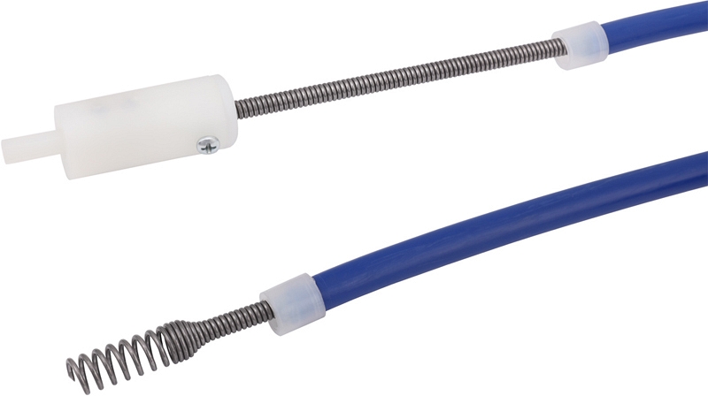 - В целях безопасности трос для чистки канализации оборудован муфтой ограничения крутящего момента, которая срабатывает при застревании бурильной головки в трубе, предотвращая поломку троса