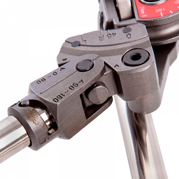 - Двухшаговая конструкция позволяет выполнять гибку на месте от 90° до 180° даже без скрещивания рукоятей, блокировка / разблокировка с помощью вращения гибочной рукояти на пол-оборота