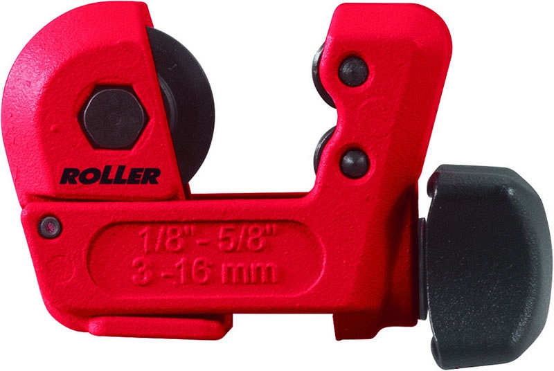 Труборез для медных и нержавеющих труб Roller Corso Cu-Inox 3-16 (Роллер Корсо Ку-Инокс 3-16) – компактный надежный роликовый ручной труборез для резки медных, латунных, алюминиевых, тонкостенных стальных, тонкостенных нержавеющих стальных труб Ø 3 – 16 мм (1/8" – 5/8"), толщиной стенки до 4 мм в труднодоступных местах.