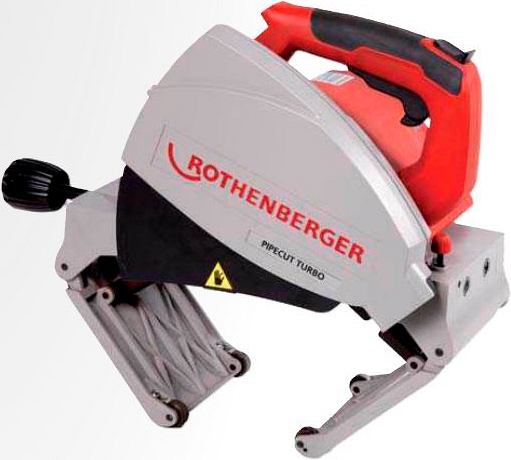 Труборез электрический Rothenberger Pipecut Turbo 250 (Ротенбергер Пайпкат Турбо 250) – электрическая дисковая пила для быстрой и точной резки стальных, нержавеющих, медных, алюминиевых, чугунных, пластиковых, металлопластиковых труб Ø 20 – 250 мм.