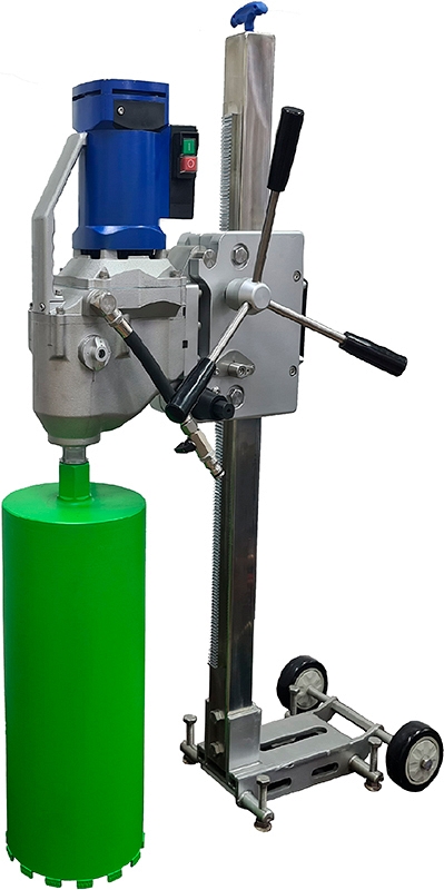 Установка алмазного бурения ProAlmaz PRO-503 EL NT (ПроАлмаз ПРО-503 ЕЛ НТ) предназначена для сверления только со станиной отверстий Ø 20 – 500 мм под углом 90° в бетоне, железобетоне, камне, кирпиче и других строительных материалах с подачей воды. Идеально подходит для строительных и монтажных организаций и фирм, занимающихся монтажом систем отопления, водоснабжения, вентиляции, кондиционирования, а также прокладкой электрических сетей, слаботочных систем.