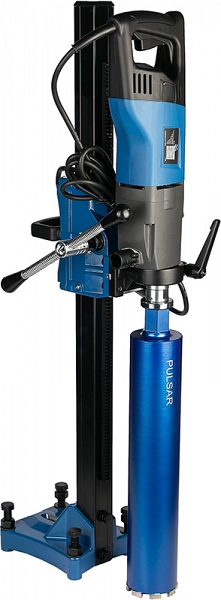 Установка для алмазного бурения с микроударом Keos Pulsar KS-180 Set (Кеос Пульсар КС-180 Сет) предназначена для сухого и мокрого сверления отверстий Ø 10 – 180 мм в бетоне, железобетоне, кирпиче, асфальте и других строительных материалах с функцией микроудара для прокладки телекоммуникационных и сантехнических сетей, под химические анкера и т.д., как в ручном режиме, так и с применением стойки (штатива) под углом 90°, как с подачей воды, так и без подачи воды.