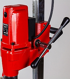 - Встроенные в каретку регулируемые направляющие обеспечивают легкую и плавную подачу сверлильной коронки
